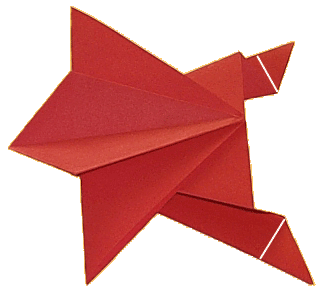 den Finger wegrutschen lässt. Leider klappt das oft nicht, weil das Papier dafür nicht geeignet ist. Ich bin immer noch auf der Suche nach gut "hüpffähigem" Papier. Mit meinem Übungspapier klappte es, wenn es auf 7,5x7,5cm (oder kleiner) zugeschnitten wurde. Schreibmaschinen-Papier hüpft auch recht gut, sofern der Frosch klein genug gefaltet wird. Teste also einfach verschiedene Papiere, vieleicht findest Du ja das perfekte Papier?! Wenn ja, wäre ich um eine kurze Mail dankbar! |