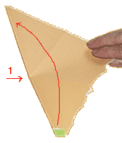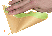 un wird entlang der diagonalen Linie gefaltet. Achte darauf, dass die Schnittpunkte (Pfeil1) genau getroffen werden.