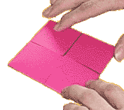 Wieder werden die 4 Ecken zur Mitte gefaltet und anschliessend das Blatt umgedreht.